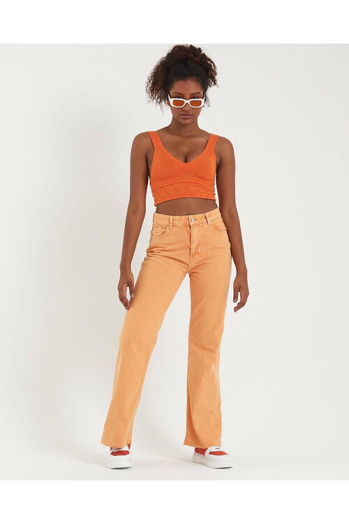 W1384 TURUNCU YÜKSEK BEL WIDE LEG JEAN
