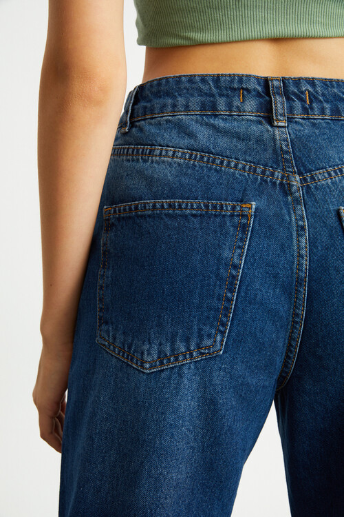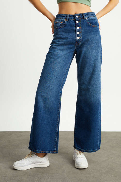 W1505 YÜKSKE BEL AÇIK MAVİ DÜĞMELİ JEAN
