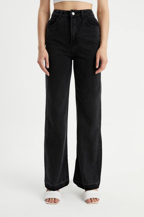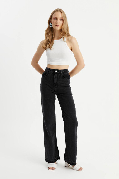 W1541 ANTRASİT YÜKSEK BEL DISTRESSED FIT JEAN