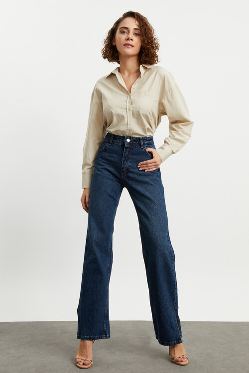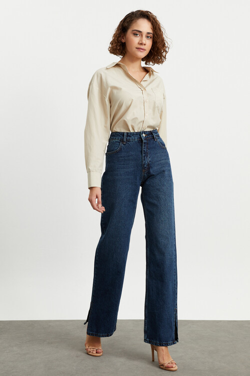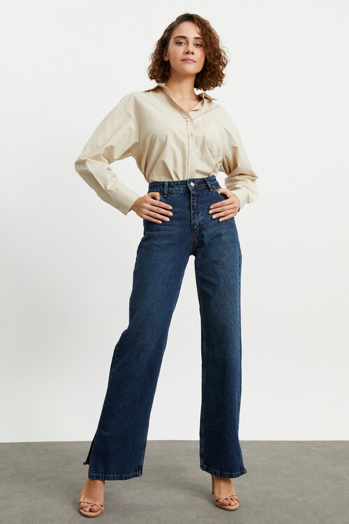 W1544 PAÇASI YIRTMAÇLI WIDE LEG JEAN