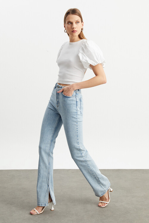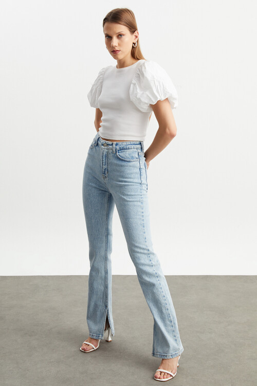 W1553 PAÇASI YIRTMAÇLI AÇIK MAVİ JEAN