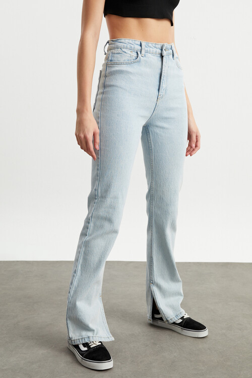 W1553 PAÇASI YIRTMAÇLI BUZ MAVİ JEAN
