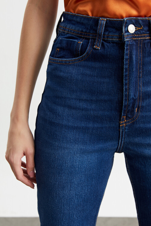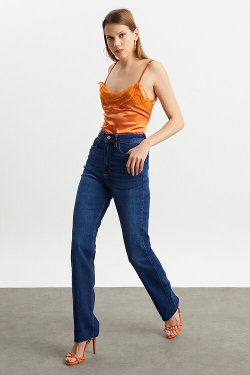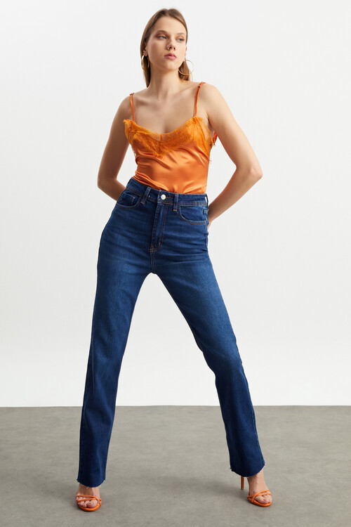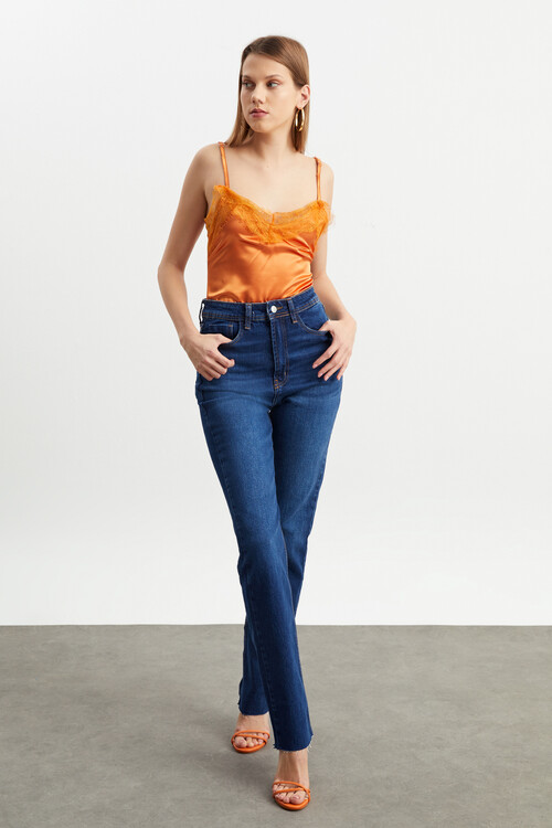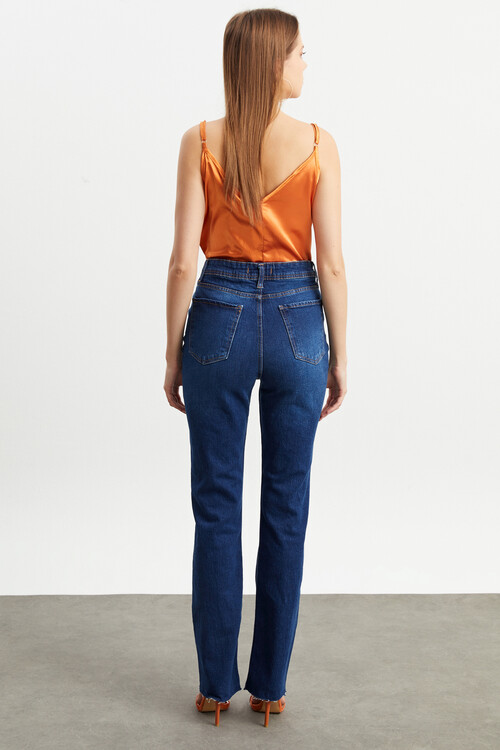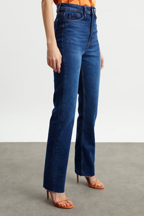 W1569 PAÇASI YIRTMAÇLI STRAIGHT FIT YÜKSEK BEL JEAN