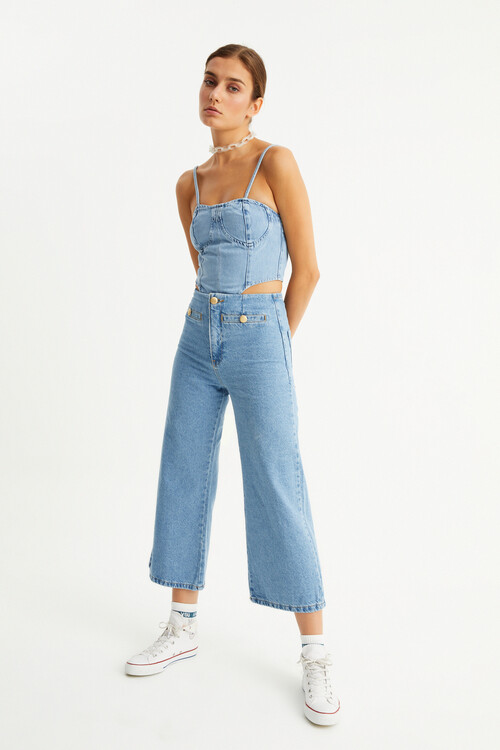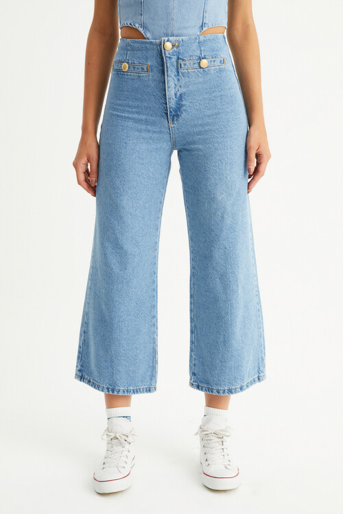 W1616 GOLD DÜĞMELİ KISA PAÇA JEAN