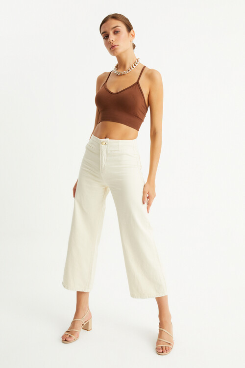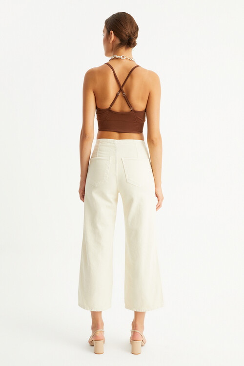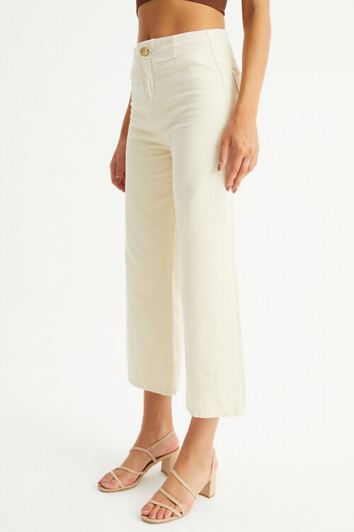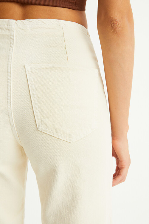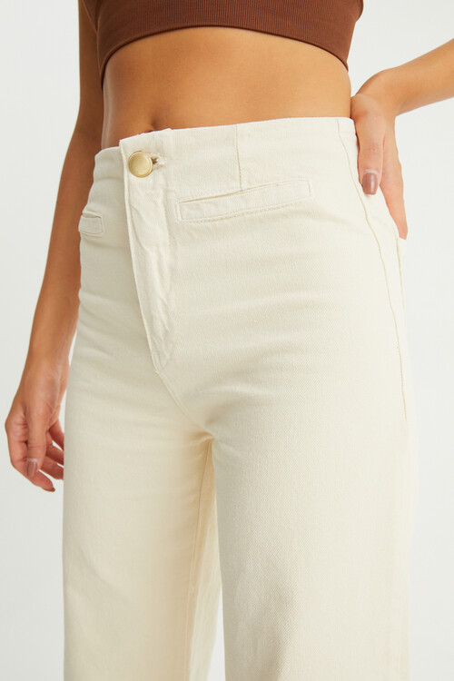 W1616 GOLD DÜĞMELİ KREM KISA PAÇA JEAN