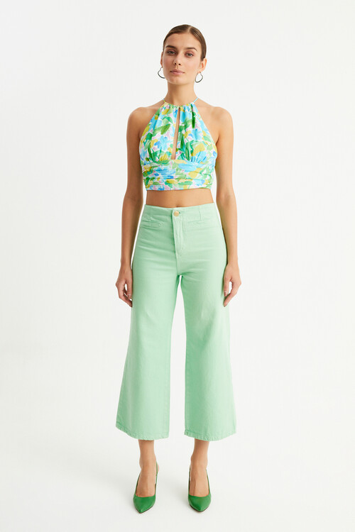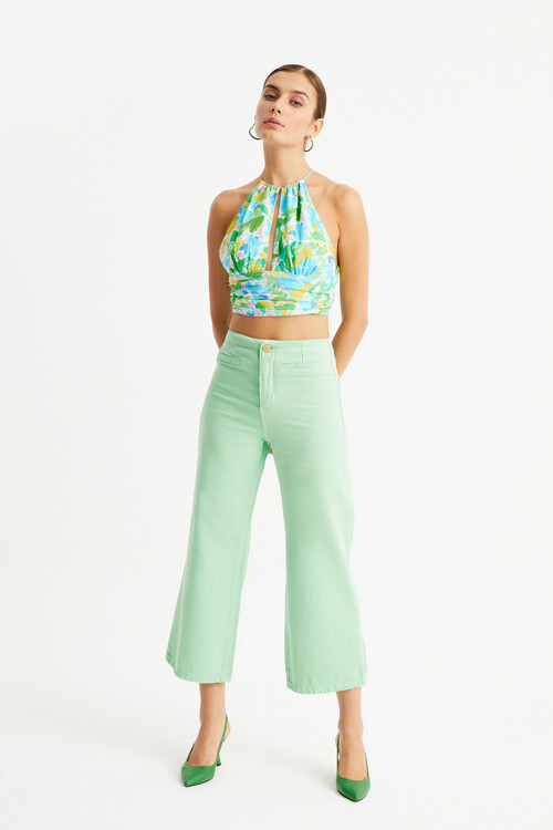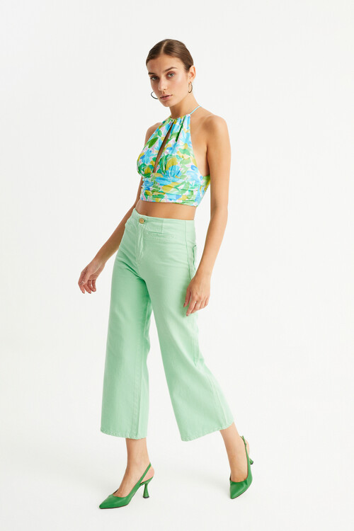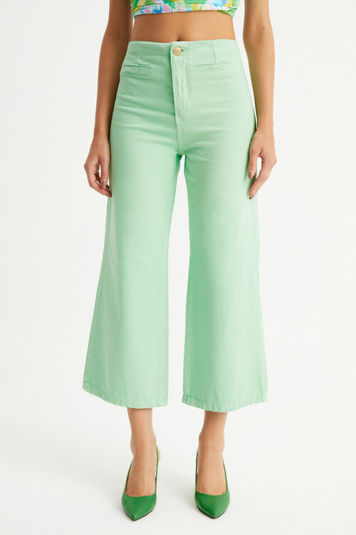 W1616 GOLD DÜĞMELİ YEŞİL KISA PAÇA JEAN