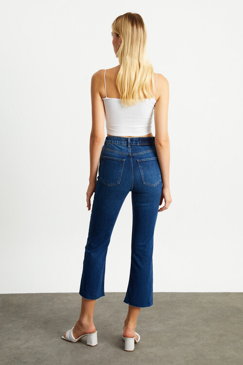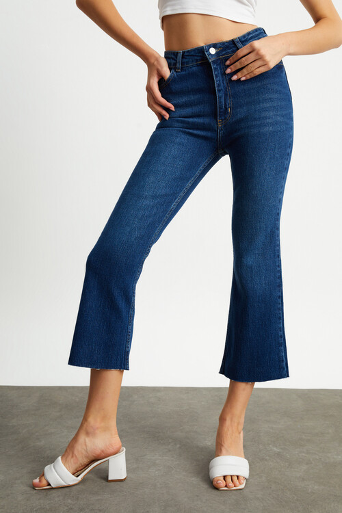 W1636 KOYU MAVİ FLARE JEAN
