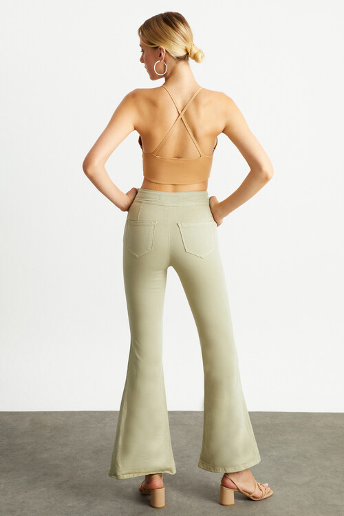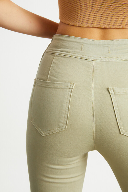 W1641 HAKİ YÜKSEK BEL İSPANYOL YANDAN FERMUARLI JEAN
