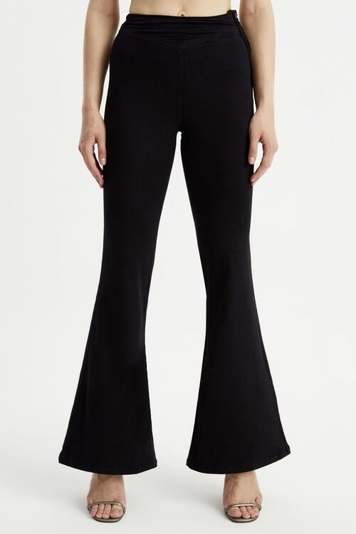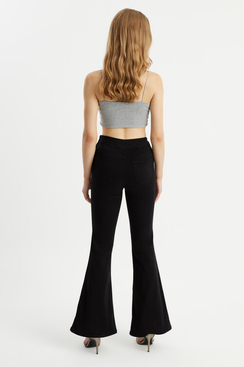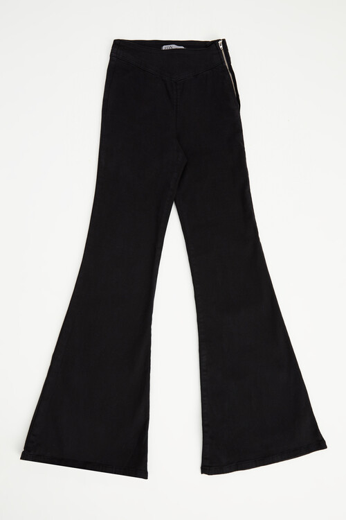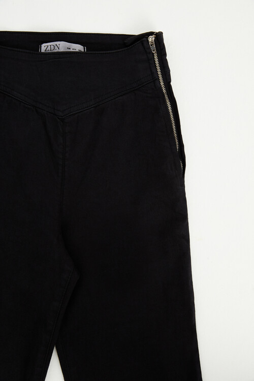 W1641 SİYAH YÜKSEK BEL İSPANYOL YANDAN FERMUARLI JEAN