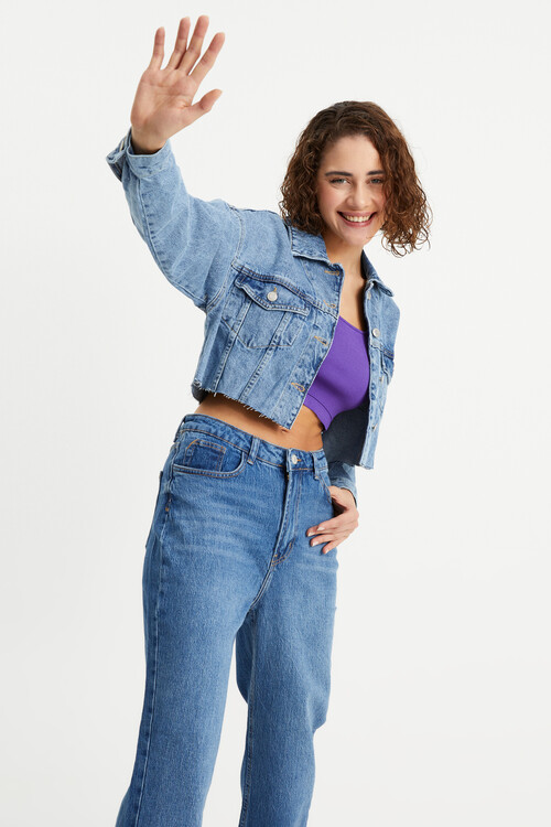 W1647 CROPPED AÇIK MAVİ KOT CEKET