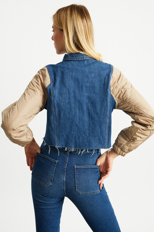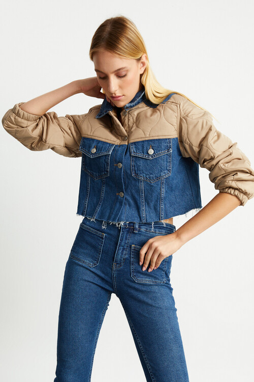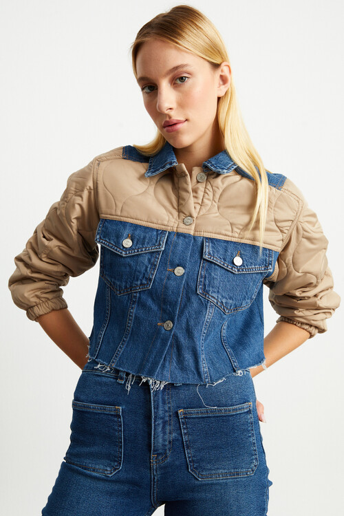 W1650 KREM KAPİTONE KOLLU KOT CEKET